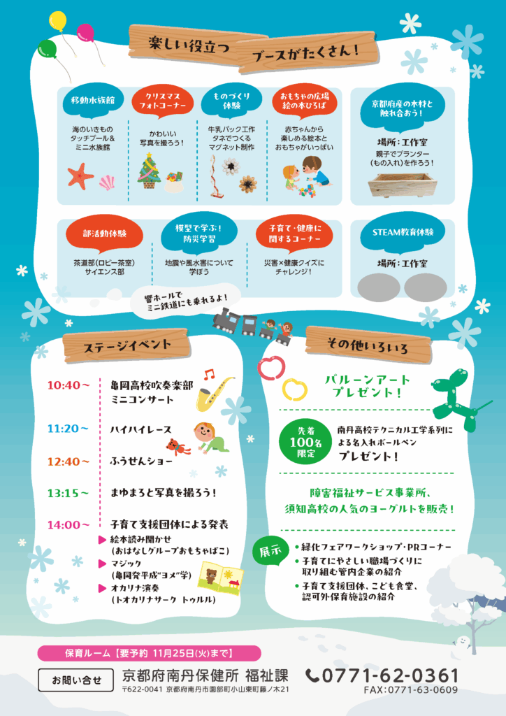 STEAM教育体験以外にも子どもたちが楽しめる催しがたくさん出店します!ぜひ、お時間のある方はお越しをお待ちしております🎵